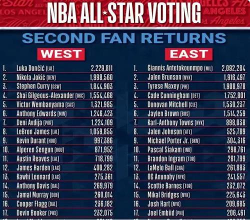 2026年全明星第二轮投票结果公布,穆雷仅排在西部第15名,入选全明星机会不大。这不免令人为穆雷叫屈。但是翻看前14位球员,穆雷又可替代谁?说到底,是西部全明星太多了,阻挡了穆雷。