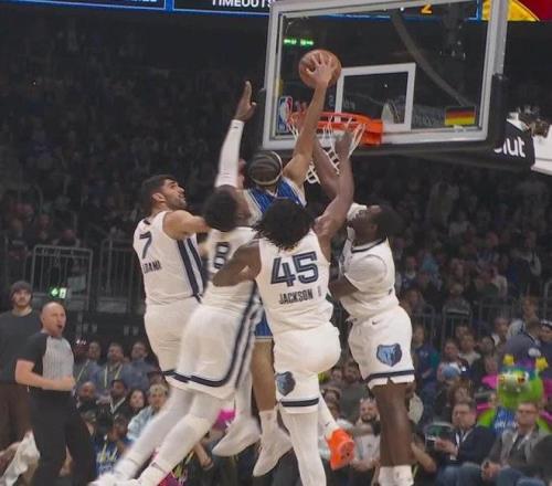 在比赛期间,魔术队后卫安东尼-布莱克贡献了一幅“世界名画”:在末节关键时刻两队战平,布莱克从后场发动一条龙反击,最终他从右路用欧洲步杀入篮下,面对灰熊四名回防球员完成扣篮。
