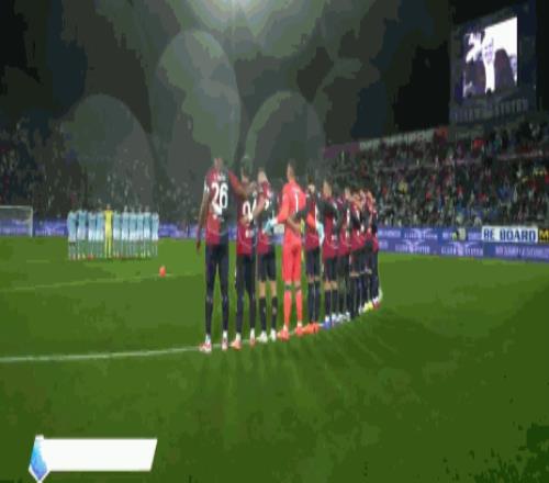 赛前仪式,双方球员为去世的紫百合主席科米索默哀