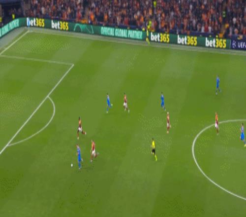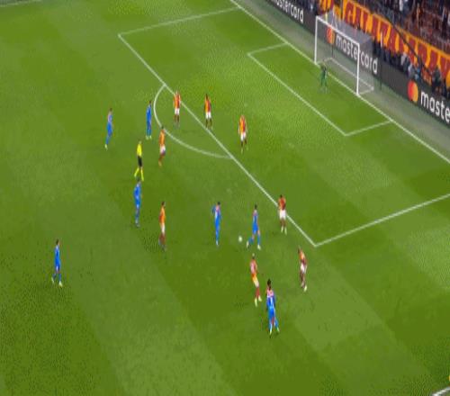 第20分钟,绍洛伊传中,略伦特自摆乌龙,加拉塔萨雷1-1马竞